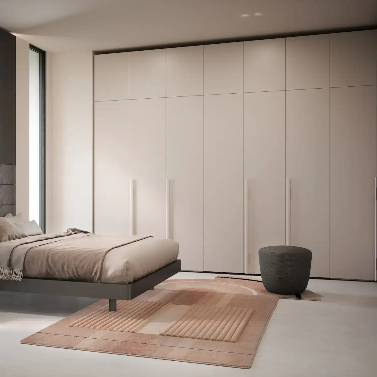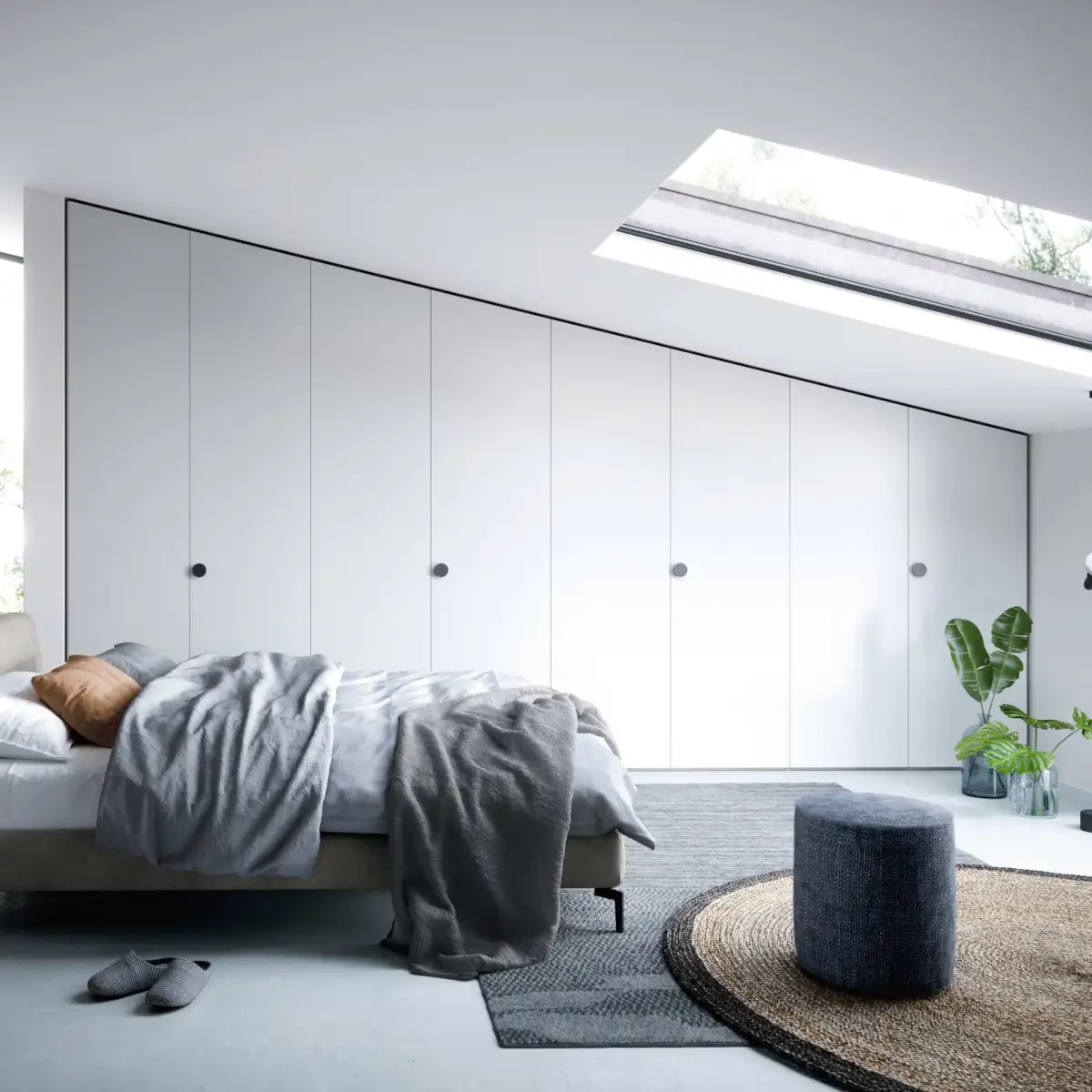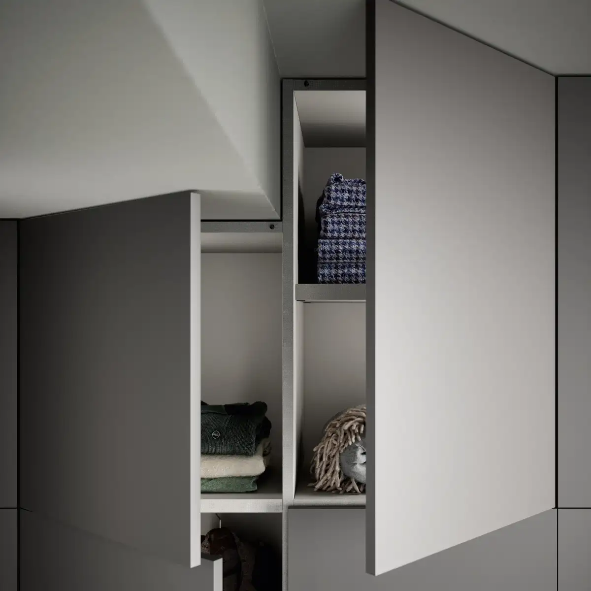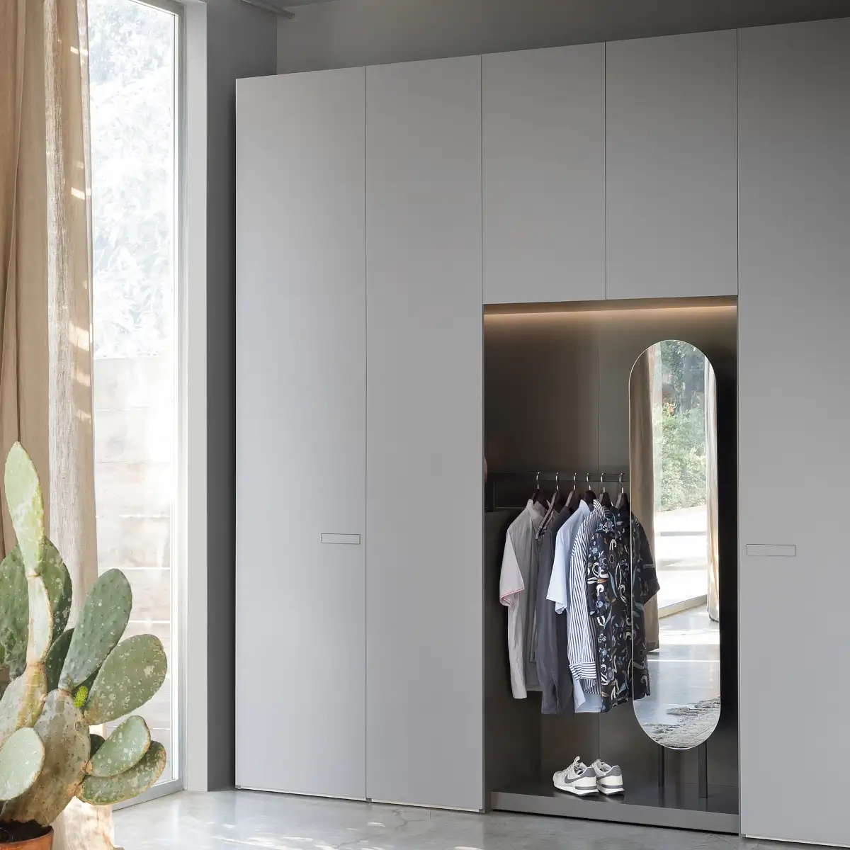 L’armadio adanta battente Alfa consente di sviluppare soluzioni personalizzate capaci di risolvere qualsiasi esigenza e di valorizzare gli spazi ottimizzando i volumi interni. L’armadio Alfa può essere a incasso, a muro o angolare. Come in tutti gli armadi battenti, è possibile prevedere il fianco finale in vetro e attrezzare l’interno con il divisorio telaio e illuminazione LED.