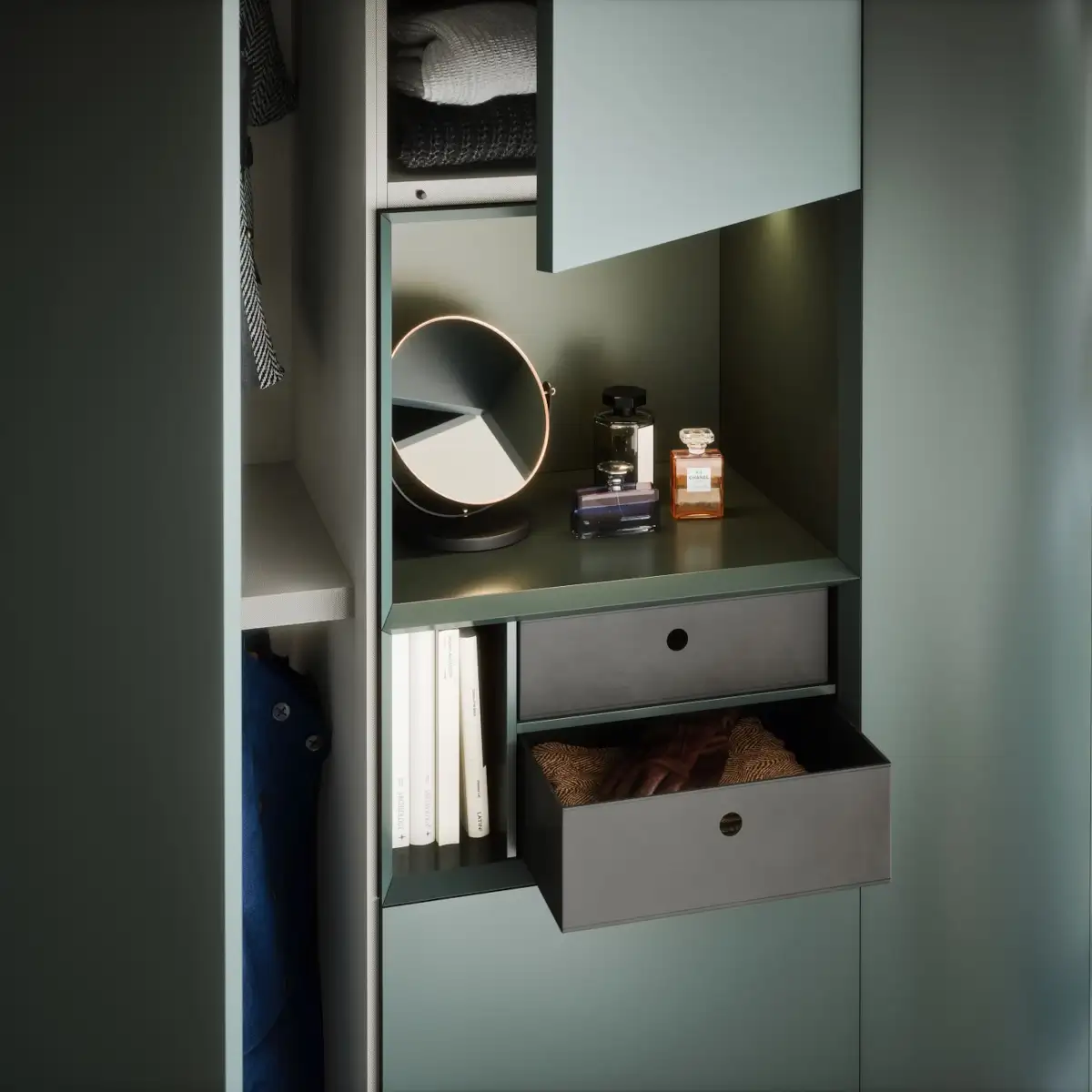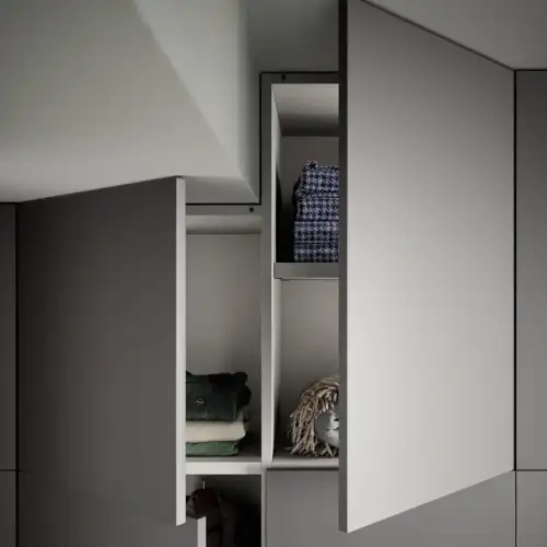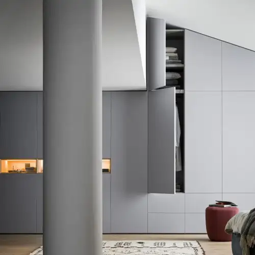 Le numerose finiture disponibili lo rendono adatto ad ogni ambiente e personalizzabile per amalgamarsi all'arredamento circostante.