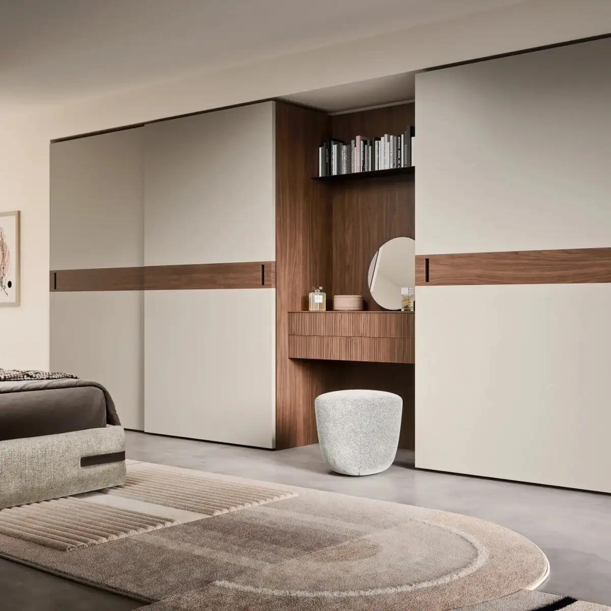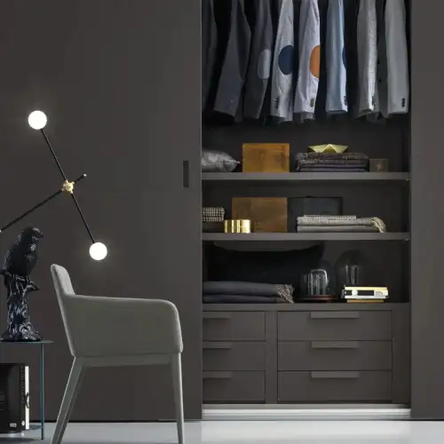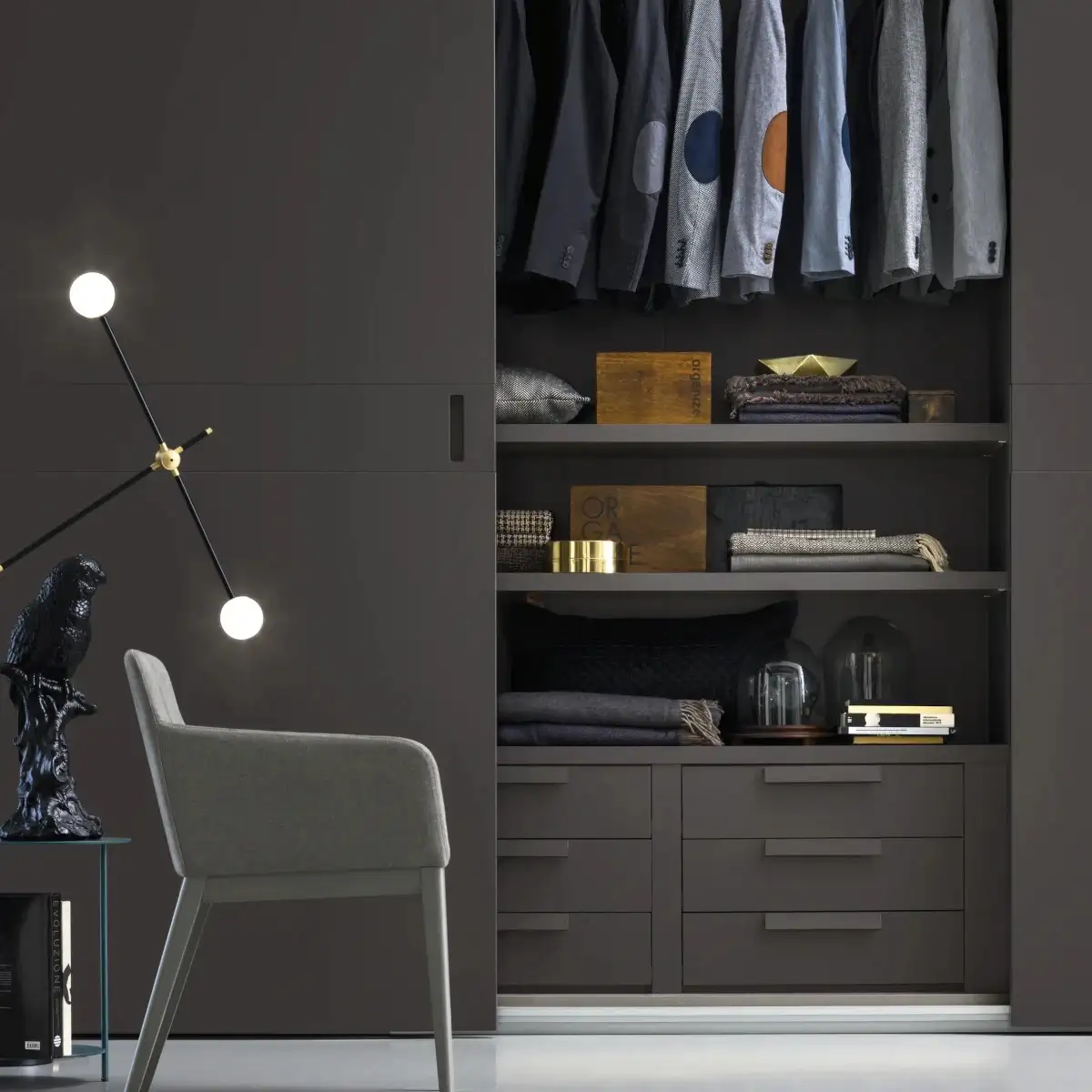 L’anta scorrevole, si dimostra una soluzione raffinata ed al tempo stesso funzionale, per vestire il guardaroba con ampie superfici in movimento, ottimizzando lo spazio a disposizione e riducendo gli ingombri.