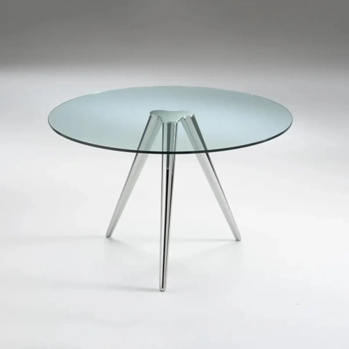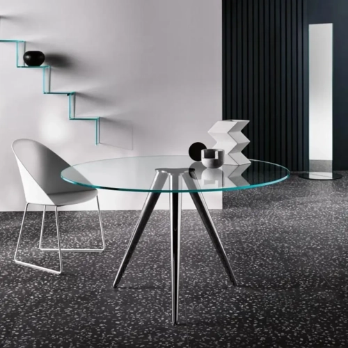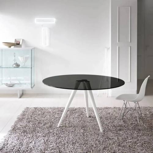 Il tavolo di design in vetro Unity è stato progettato dall’architetto Karim Rashid. Tavolo alto solido ed elegante allo stesso tempo, Unity è in grado di adattarsi a qualunque ambiente. È composto da un piano rotondo in vetro temperato trasparente, fumè o extrachiaro, e ha un basamento in metallo verniciato bianco o cromato.